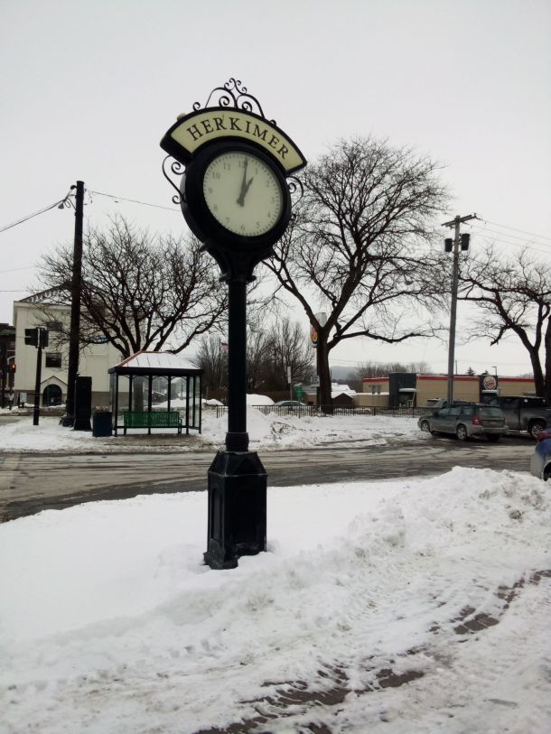 The coat I am wearing used to be Steve’s, although he rarely wore it. He was more of a jacket guy. One of our rummage sale finds, I think. I do not remember where we got the hat, but it is one of those hood-like things that wreaks havoc on your hair-do. Luckily, I rarely do my hair. The scarf is one I made, using up several stray balls of yarn.