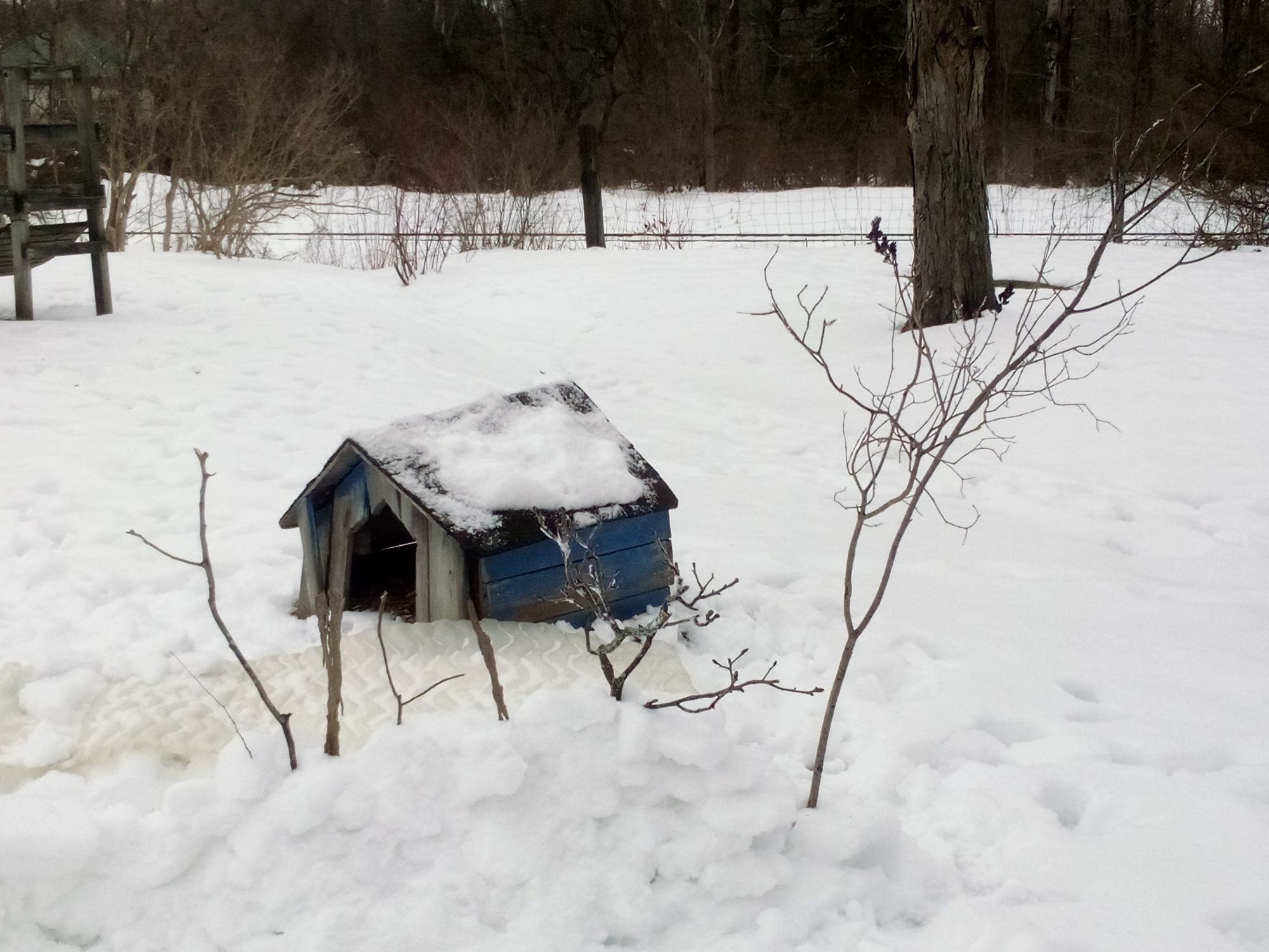 I also helped find a couple of the sticks we decorated it with. Anyways, running on the sanded ice, crunching though the icy snow, I had two days of exercise. Will I manage to leave the house tomorrow? It will depend on what Mother Nature piles on us overnight!