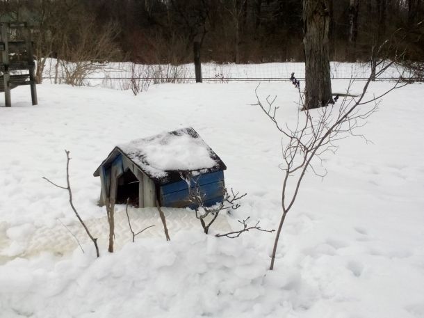The better day to run would have been yesterday, when the roads were bare. However, I went over to my sister Cheryl’s, and played in the snow with her two grandkids. She and her son-in-law were chipping ice out of the gutter. The snow was the crunchy kind, crusted on top, soft underneath. It is an effort to walk around in such snow but so fun to make the crunch. The kids got the idea to make a snow fort using some of the ice-ish layer, you know, the part you crunch through. I helped them carry chunks of ice. It must have been good exercise, because I got quite out of breath.
