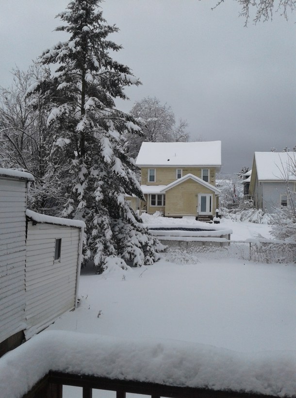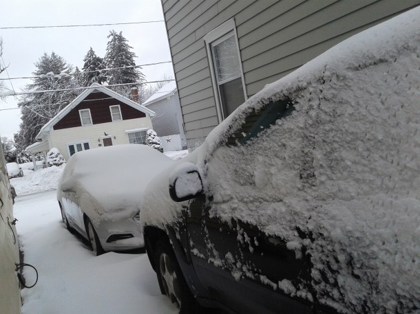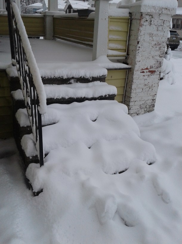 I really have enough to do another Scattered Saturday post, but I took some pictures this morning so thought to have another Blogger’s Snow Day.  Here is an update of the picture I used with yesterday’s post.  As you can plainly see, there is less now than we got with the Nor’easter of 2016.  Additionally, our delightful next door neighbor used his snowblower to clean out the end of our driveway last night.  We only had to deal with the snow that had fallen since.  We have nice neighbors.
