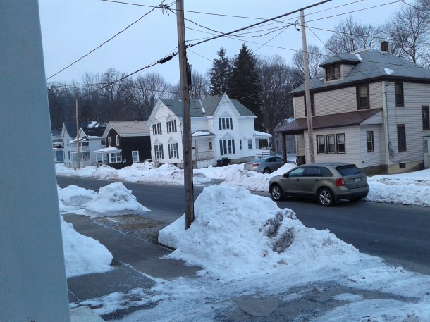 Here is a view in the other direction. My only pleasure is to see the bare sidewalks. I have not been running lately and want to start again. Perhaps tomorrow.