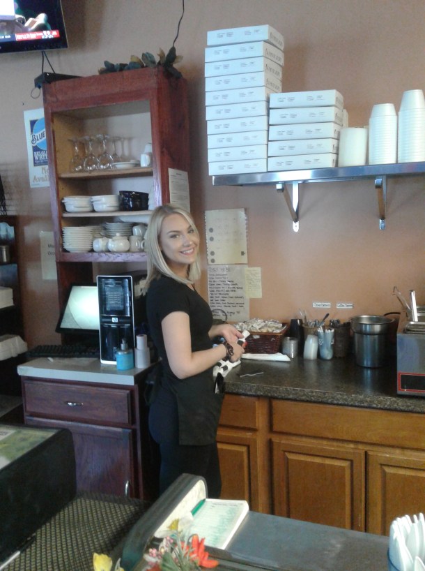 After I took a picture of the dessert case, I thought I would take a couple more for blog post purposes. I asked out waitress to pose.