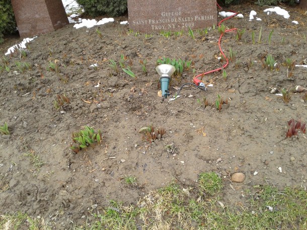 The first picture-worthy thing I encountered were some flowers sprouting up in front of St. Francis de Sales Church. I love to see a little green in March!