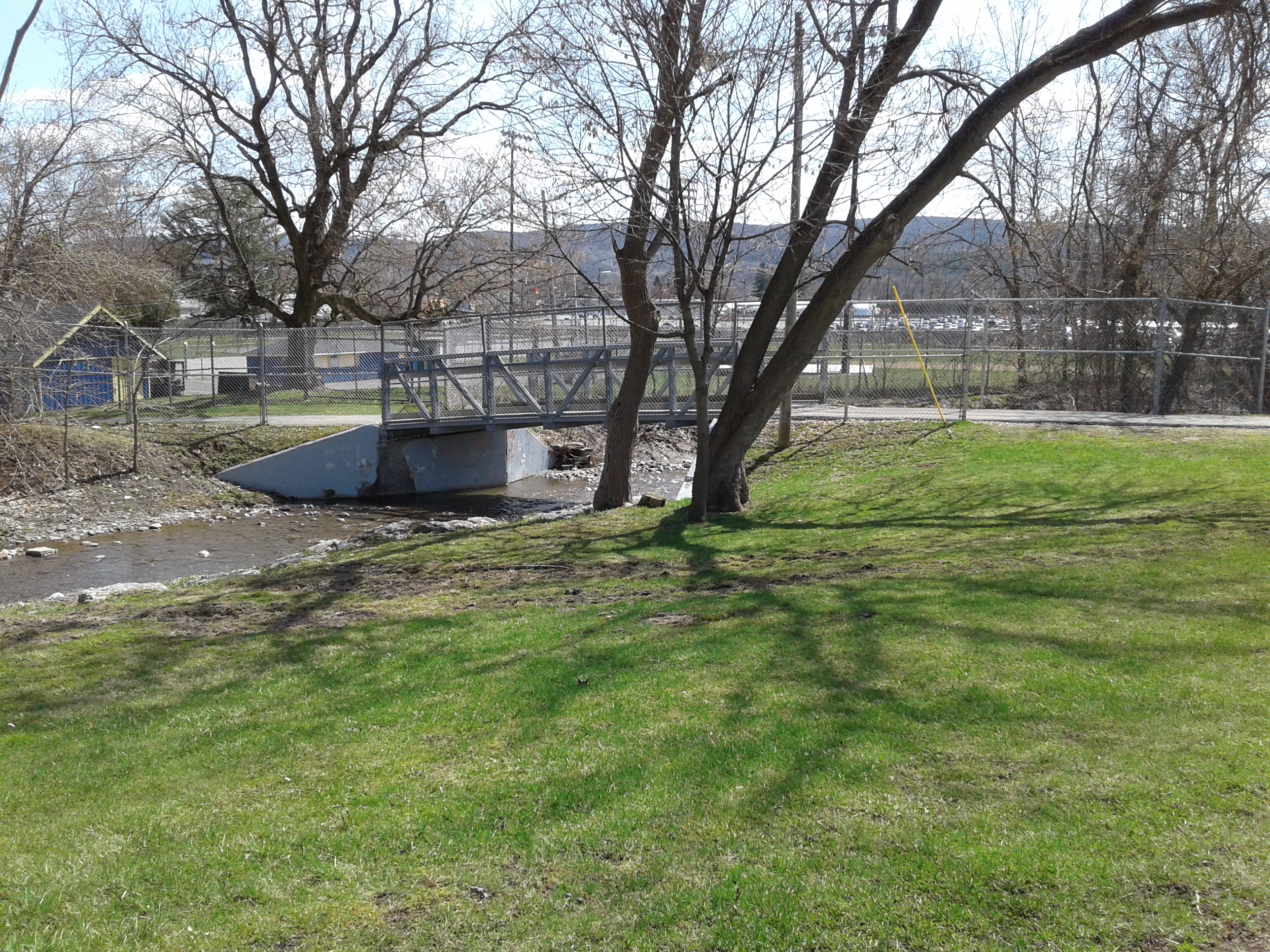 I often run over the little bridge behind the school.  I stopped doing that over the winter, because of course it froze more readily than the ground.  These days it is just fine for running purposes.