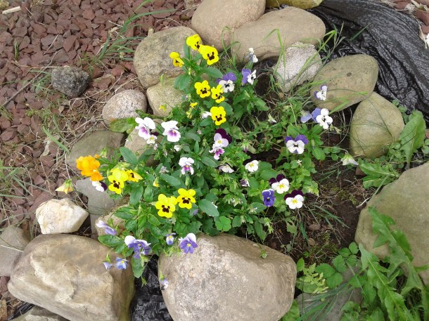 I grabbed an update on our Rose of Sharon while I was in the area. Then I thought of our Johnny Jump-ups, which I had noticed are also looking well.