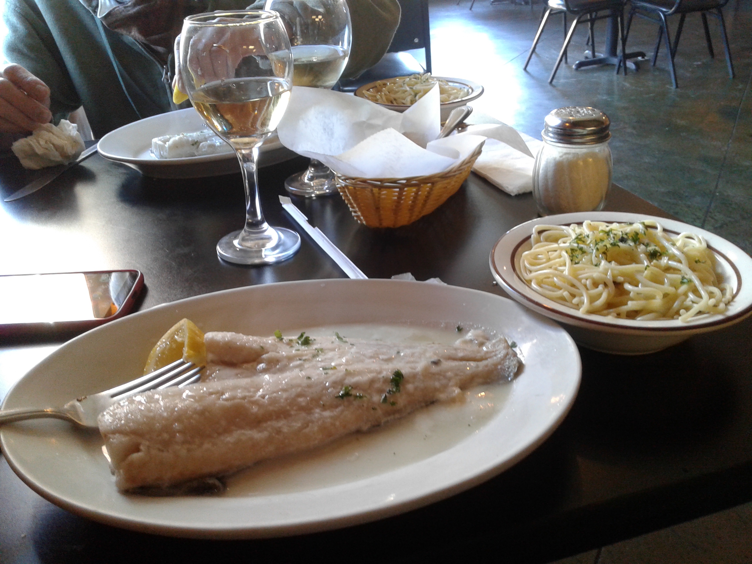 All day I had been thinking about the broiled haddock served in a white wine lemon butter glaze with a side of pasta.