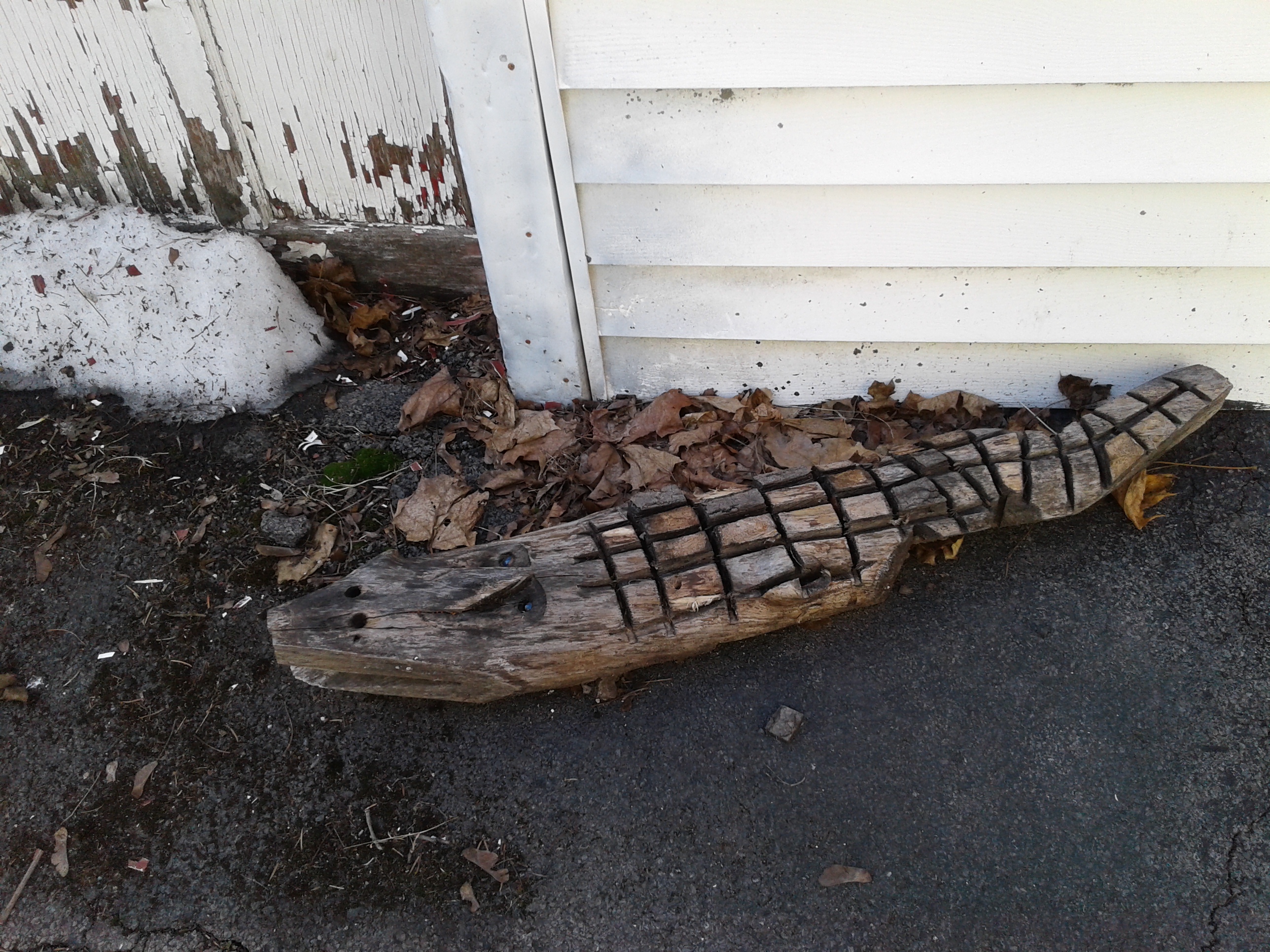 This is an alligator (or maybe a crocodile) (depending on if I will see him later or in a while) made with a chain saw. My sister Vicki got him for me from Knoeble’s, an amusement park near where she lives in Pennsylvania. Quite a different kind of monster from Nosferatu but I find him equally cheering.