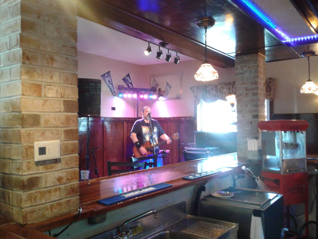 Last Wednesday I decided to treat myself to dinner at Fratello’s Pizzeria in Frankfort, NY again, because I had enjoyed good food and music there the previously. I sat at the bar, ordered a glass of wine and perused the menu. I noticed a musician setting up but did not know who he was.
