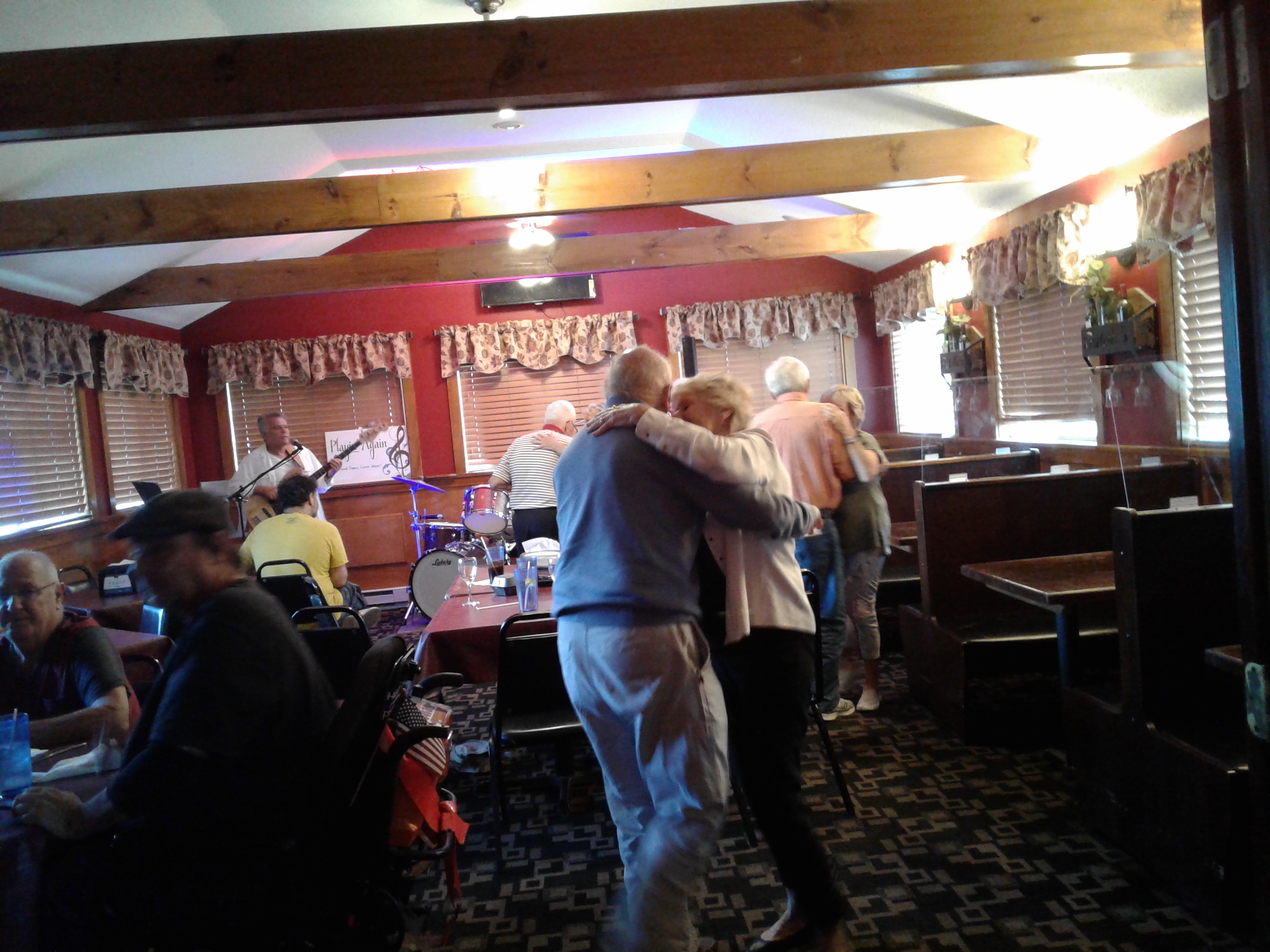 When I went in the other room to get the pictures, I danced my way in and out as usual. A table with three couples sitting at seemed to enjoy watching me. A short time later, they all got up to dance to a romantic tune.