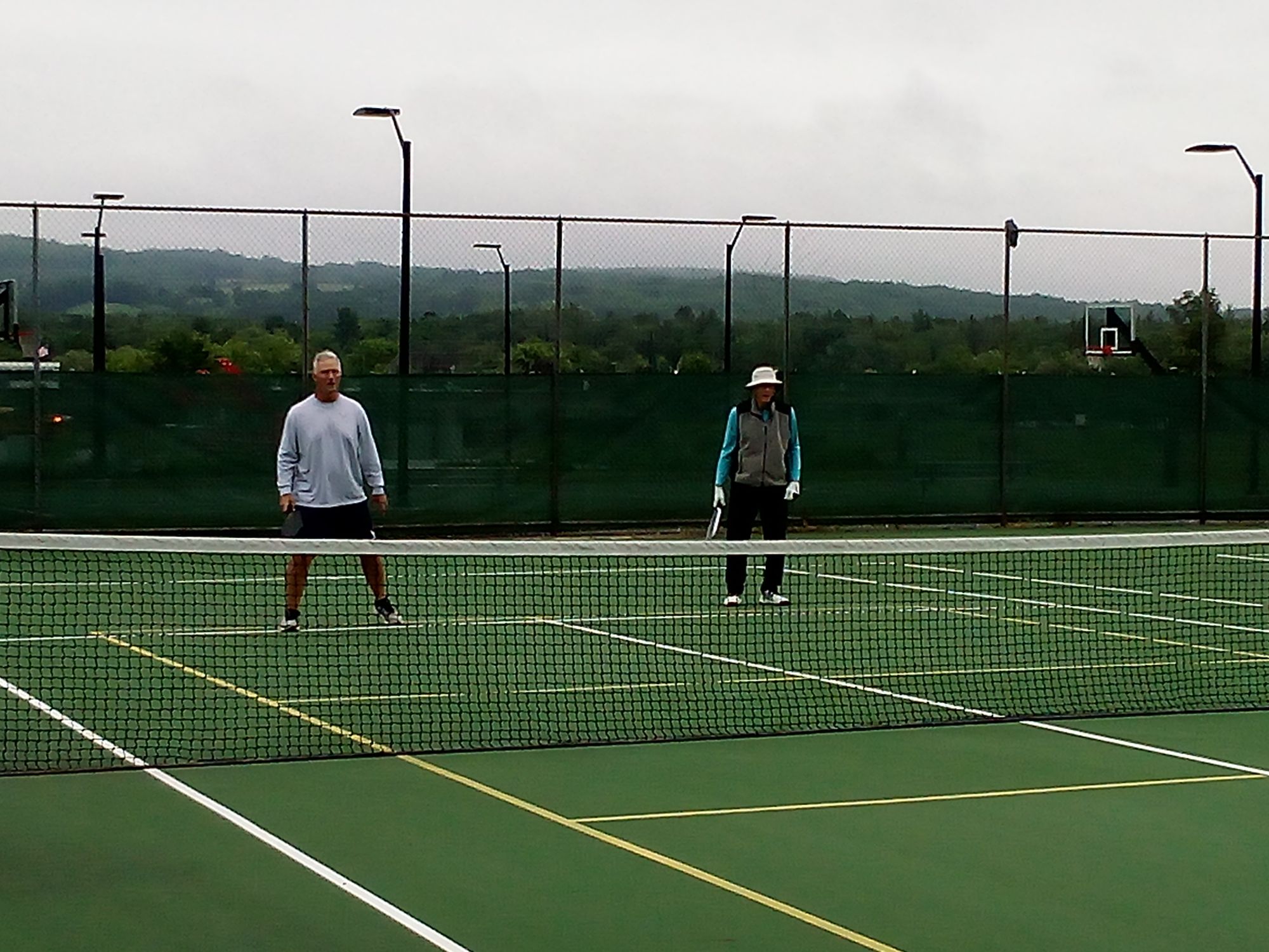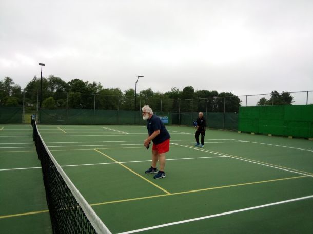 Some gentlemen were playing pickleball.  I had heard jokes about how rough and tough those pickleball players were, so I asked them if they were the infamous pickleball players.  They admitted it, and graciously allowed me to take their pictures for my blog.  I brought up the Superbowl commercials with Willem Dafoe and Catherine O’Hara playing bad-ass pickleball.  They liked the commercial, too.