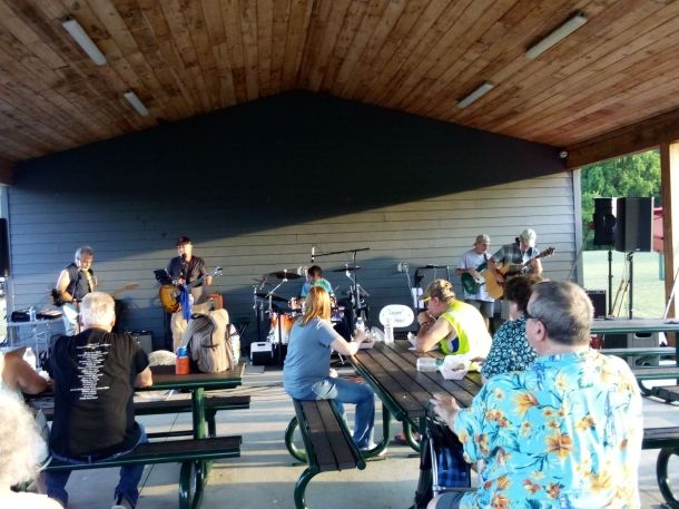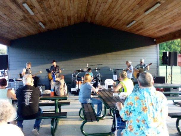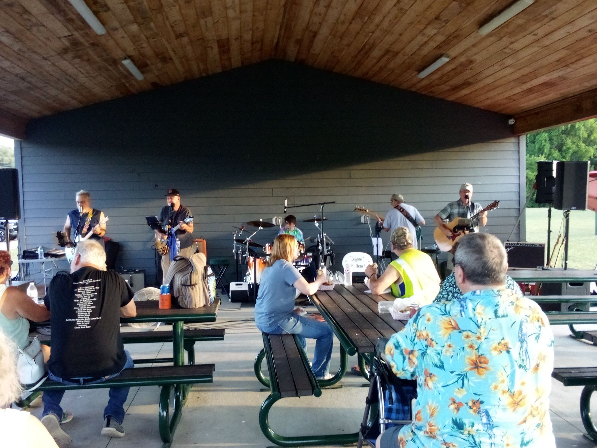 I did not stay long, although I could have gotten something to eat from one of the food trucks there. I bet some of those people on the picnic tables would have been nice enough to let me sit with them. However, I wanted to get home and start writing my story on the meeting I had been to. Rick saw me as I was leaving and waved. I waved back and blew a kiss. I hope The Posers play soon at a time when I can be there for longer.