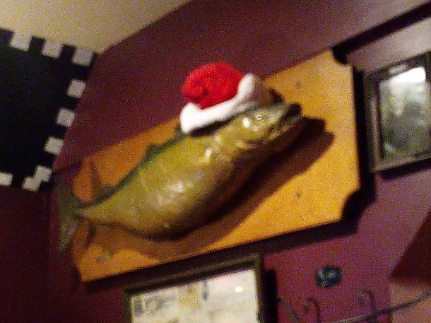 My picture of the fish with the Santa hat came out blurry, but I am unlikely to get down there again and take a better one before the New Year. Then again, one never knows. I also have a craving for pizza, and Yetty’s pizza is delicious. If you get it with sausage, the sausage is a whole layer on top of the crust. I get hungry just thinking about it. Then there is pasta, salads, subs, appetizers, and more. So much food. So little time.