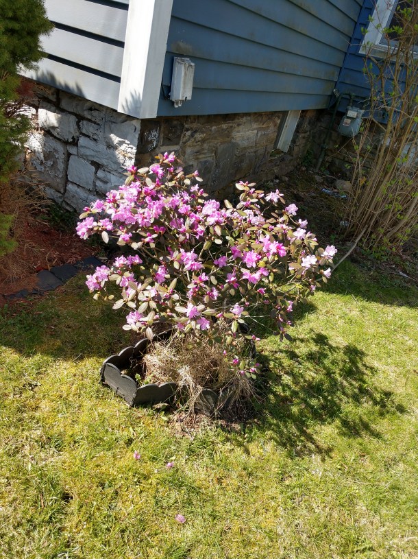 I do not have time to search my Media Library for something appropriate or mildly connected, so I randomly share this azalea from a neighbor’s yard some few years ago. I do not think it is there still. The picture was, of course, taken later in the spring than we are now. I want to look for crocuses in my yard but fear there will be none. Winter keeps returning to the Mohawk Valley and saying, “And another thing!”
