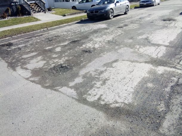 I add this picture purely for the sake of having three illustrations.  It is a battered street in Ilion, which I photographed as a possible accompaniment to my article for Sentinel Media about the Ilion Village Board of Trustees Meeting on Monday.  This and several other roads will soon have work done on them, as was discussed in the meeting.
