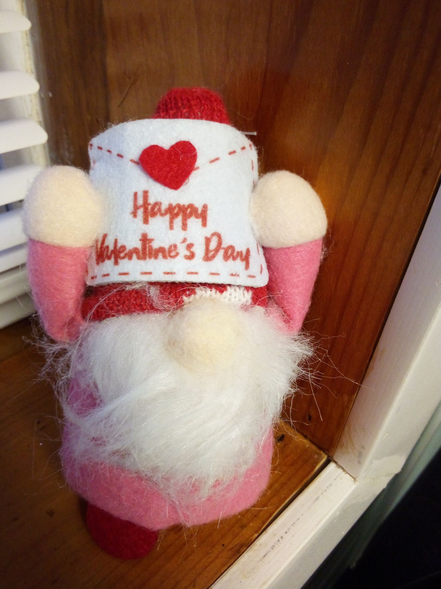 As I got up to go to the rest room, I noticed the Valentine’s Day decorations.  Nice!  I had noticed some sparkly red earlier but thought it was left from Christmas. I congratulated the staff for being so up to date.
