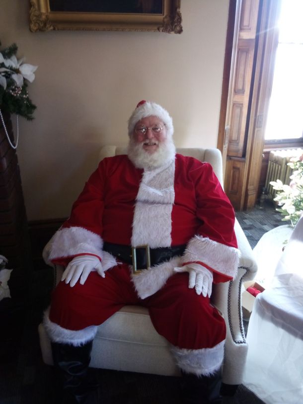 I threw in a photo right away.  This is Santa Claus, who was at the Herkimer County Historical Society last Saturday.  They were also selling cookies.  Yum!  I was in a perfectly dreadful mood and had been for some days.  I did not know what to do, but I wanted to support the Society, so I walked over.  The volunteers gave me a warm welcome (they know me from the murder mysteries) and invited me to hang out with them for as long as I wanted to.  Of course I did and had a wonderful time.