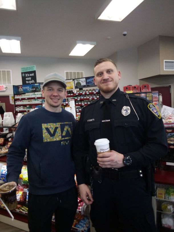 The police officers were quick to hand gift cards to anyone who entered Stewarts, giving everybody a chance to have coffee with a cop.  Many of those present expressed the hope that this will become a regular event in Frankfort and in surrounding villages as well.