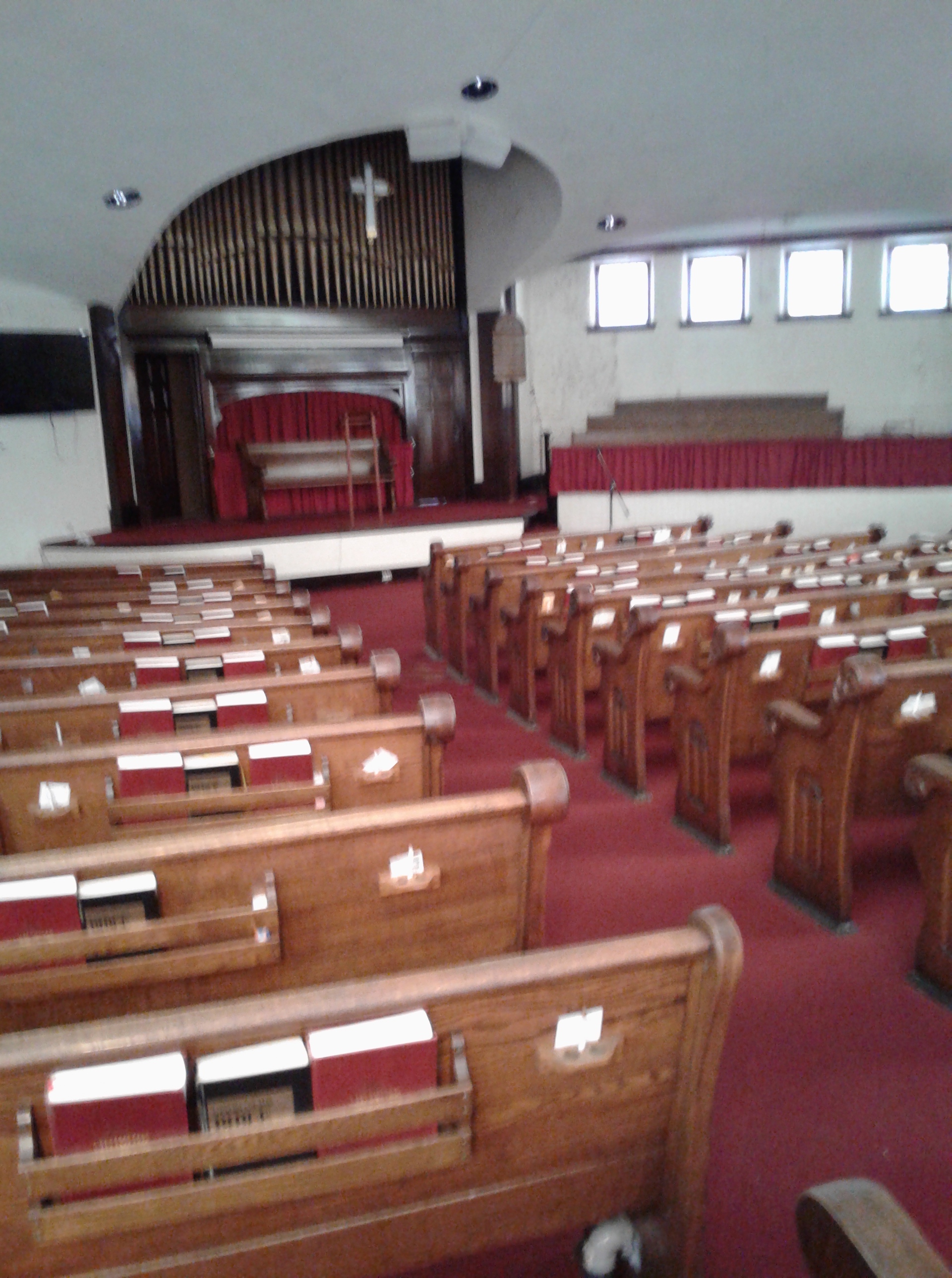 The first thing I had to do was sign a waiver, which I was happy to do. I understand that organizations can’t be too careful these days. I wandered into the church part (I’m not sure what that is called and Google was no help). I saw some nasty looking dark spots all along the walls.