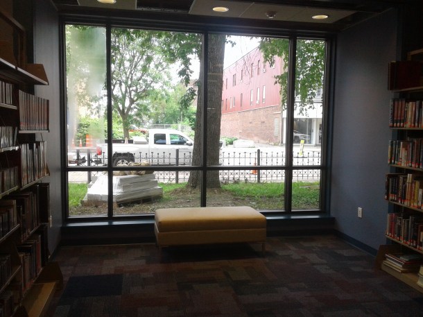 I like being able to look out a window when I’m writing, which is something I often go to the library to do.  With that in mind, I was really happy to see a couple of well-placed tables.
