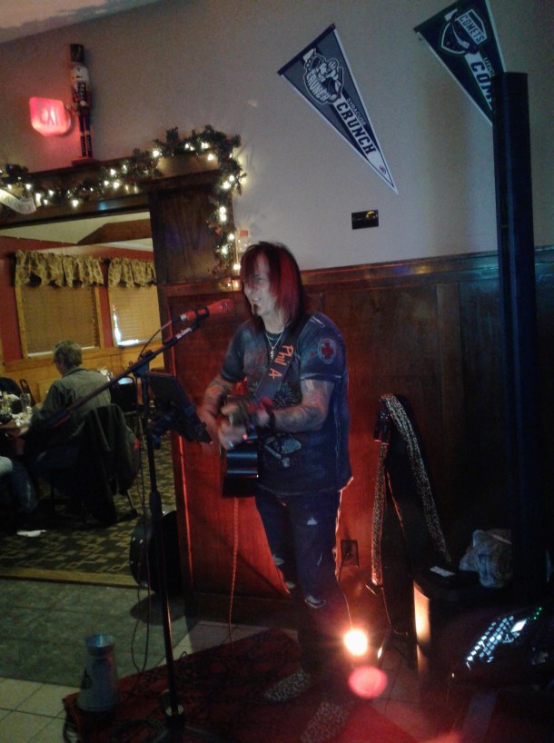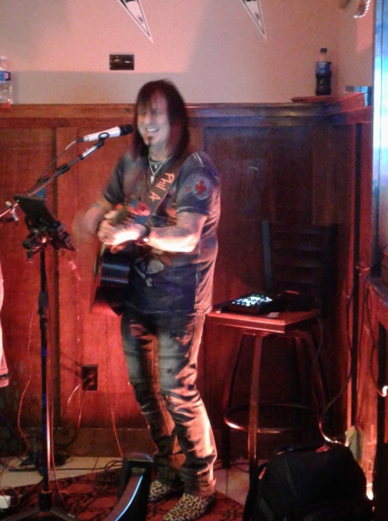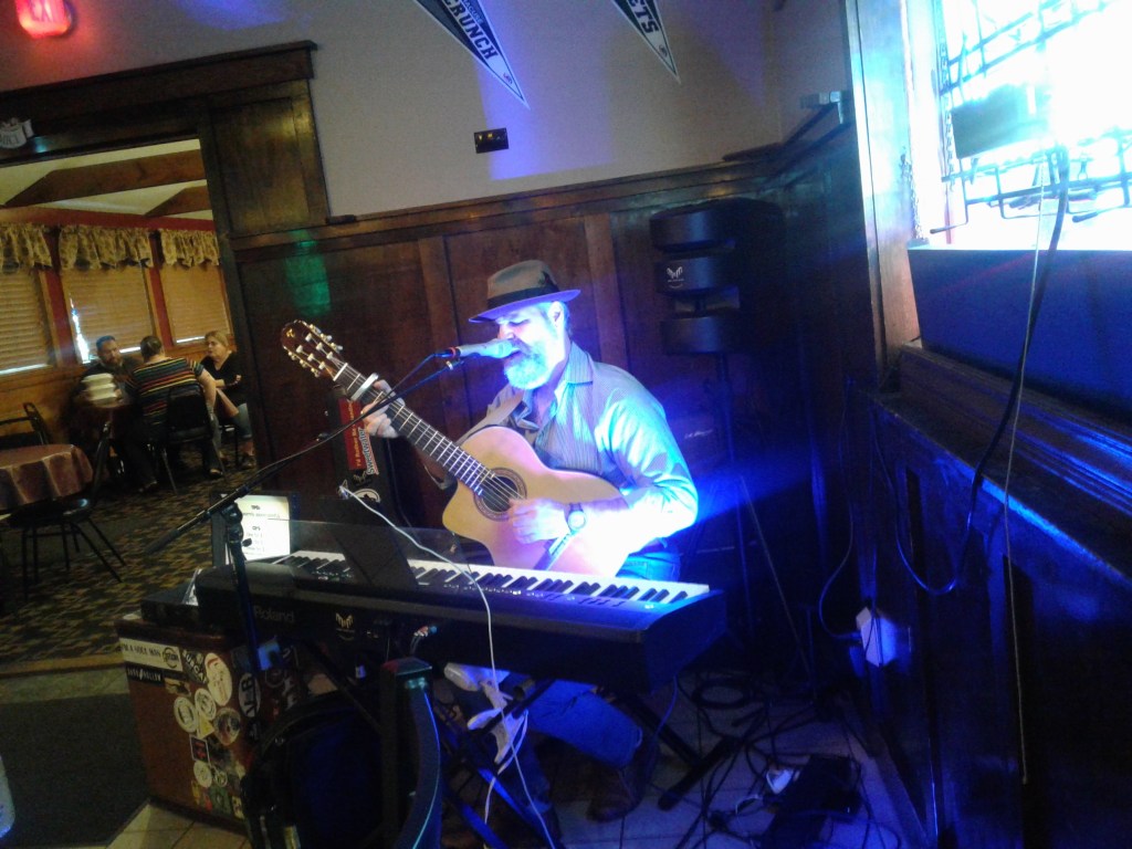 “Get your ass in the shower, we’re going out!” my work friend Rick shouted behind me. Steve picked up the phone at that point. He had not heard Rick’s interjection, so I filled him in on that. The current heat wave has drained up both of energy (yes, I KNOW other parts of the country have it worse, at least we have fans, we are just big babies, oh, shut up), but we decided it would be nice to go sit somewhere air conditioned, eat some good food and hear some music from one of our favorites.