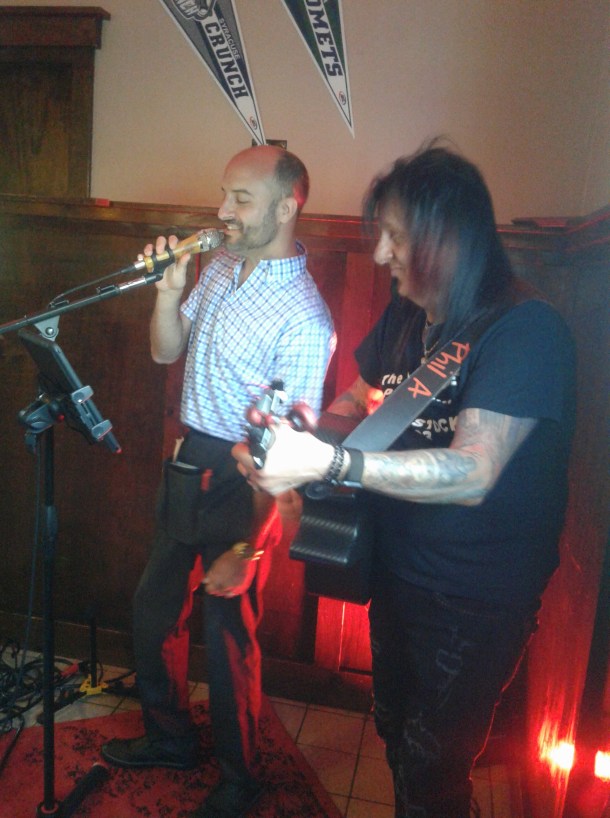 Steve and I agree that nobody seems to have more joy in music and living than Phil Arcuri. It is always a pleasure to hear him play. Additionally, he includes the setting and audience in his songs. In “Margaritaville,” he said his “brand new tattoo” is “a Fratello’s cutie,” and in one chorus it was “all Geno’s fault.” Geno is a member of Fratello’s excellent staff.