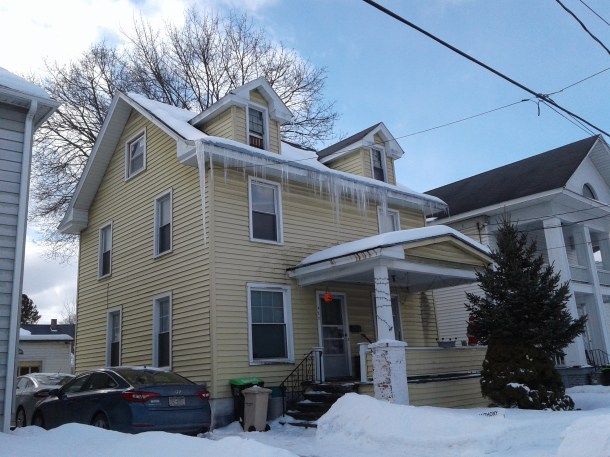 This is one of the hills I ran up on my run this morning. It doesn’t look very impressive, does it? I ran up a steeper hill next, which I do not have a picture of. That hill continued up to Herkimer College, by some dorms in what I call the Kick Butt way to the college, because there are like three steep hills with flat(ish) spaces between. Ahem, I did not run up to the college. I made it up one stretch of steep then turned around and ran back down. Later I ran up a couple more uphills. I tell you, they do not get any easier.