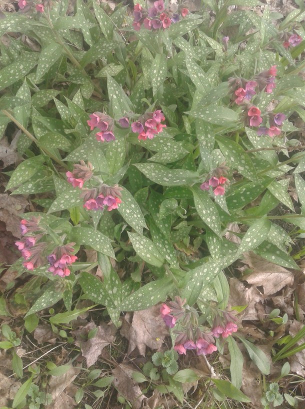 The first thing that struck my eyes was the beginnings of my peony bush, which magically appeared some years ago after Steven had successfully mowed down the wild day lilies enough times. I said my stalker planted it, but I was just being silly. Still, that is kind of a play on words: plant, stalk. Yes, I just have to be that way. Anyways, I see I have to get out and pull up the day lilies AGAIN. I’m not sure if the other greenery is violets or daisies, but I will let them live, because they don’t choke out the peonies.