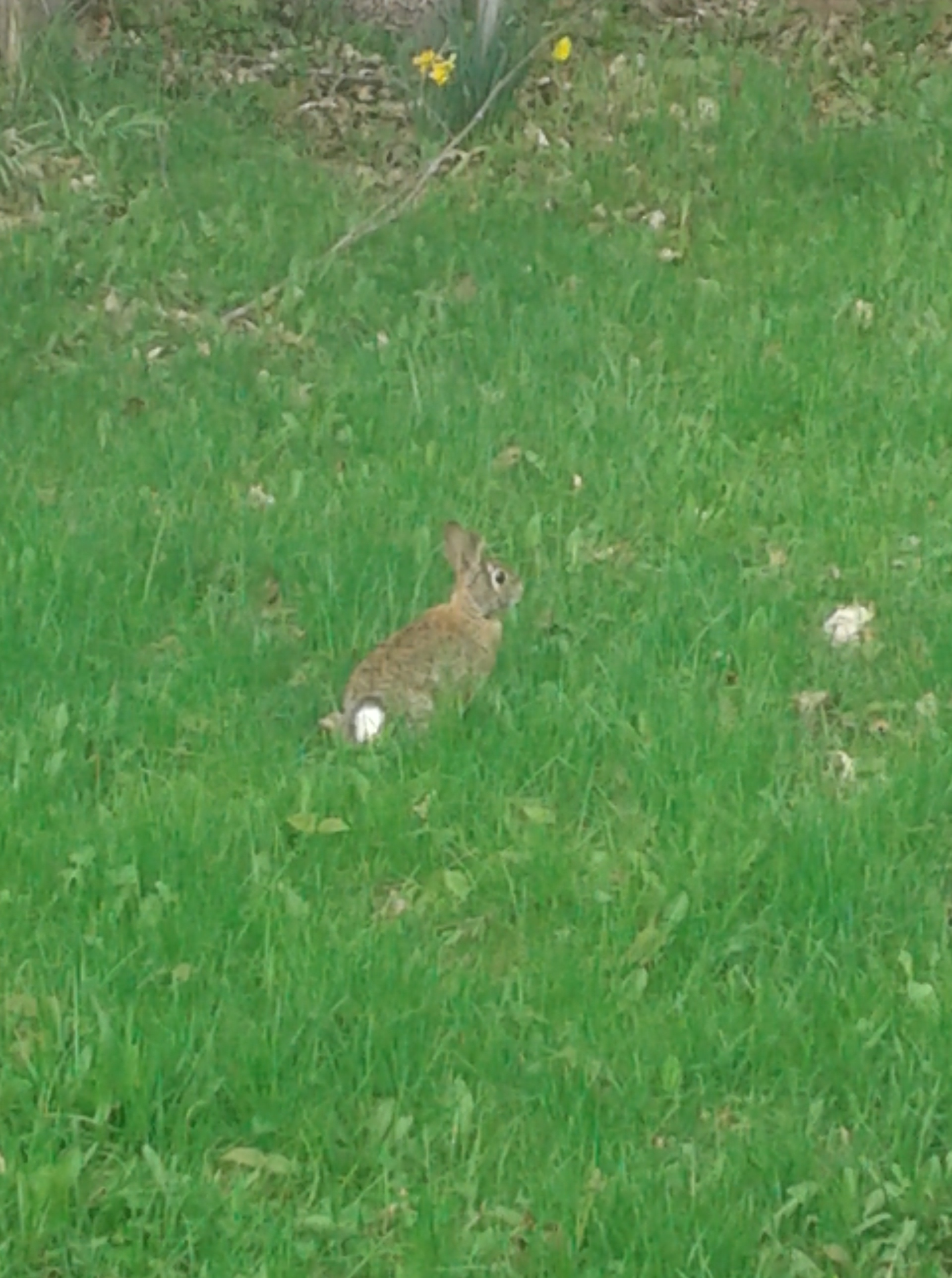 I unfortunately startled a visitor to my lawn. Yes, I know, these animals eat flowers and the vegetables I hope to plant, but I think they are cute.