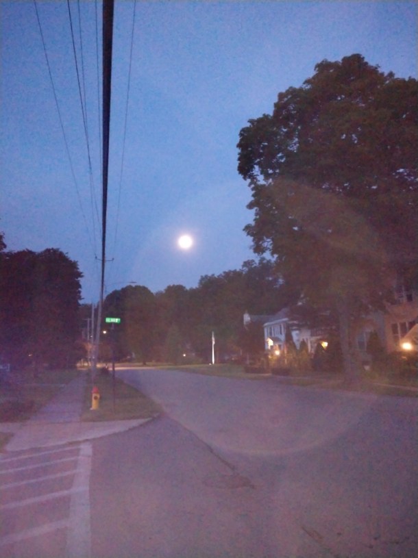 The moon was not clear even to my eyes, so I did not worry that my phone doesn’t always take the best pictures. I tried for a close-up, then took one that showed more of the neighborhood.
