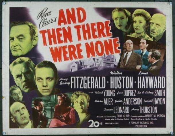 This is the movie poster from the DVD I have. There is at least one other movie version of And Then There Were None that I would also like to have on DVD. I would also like to direct the play version if Ilion Little Theatre wanted to revive it. It has been a few years; I wonder if they would. Perhaps not. They recently presented Mousetrap and plan to do Murder on the Orient Express next spring.