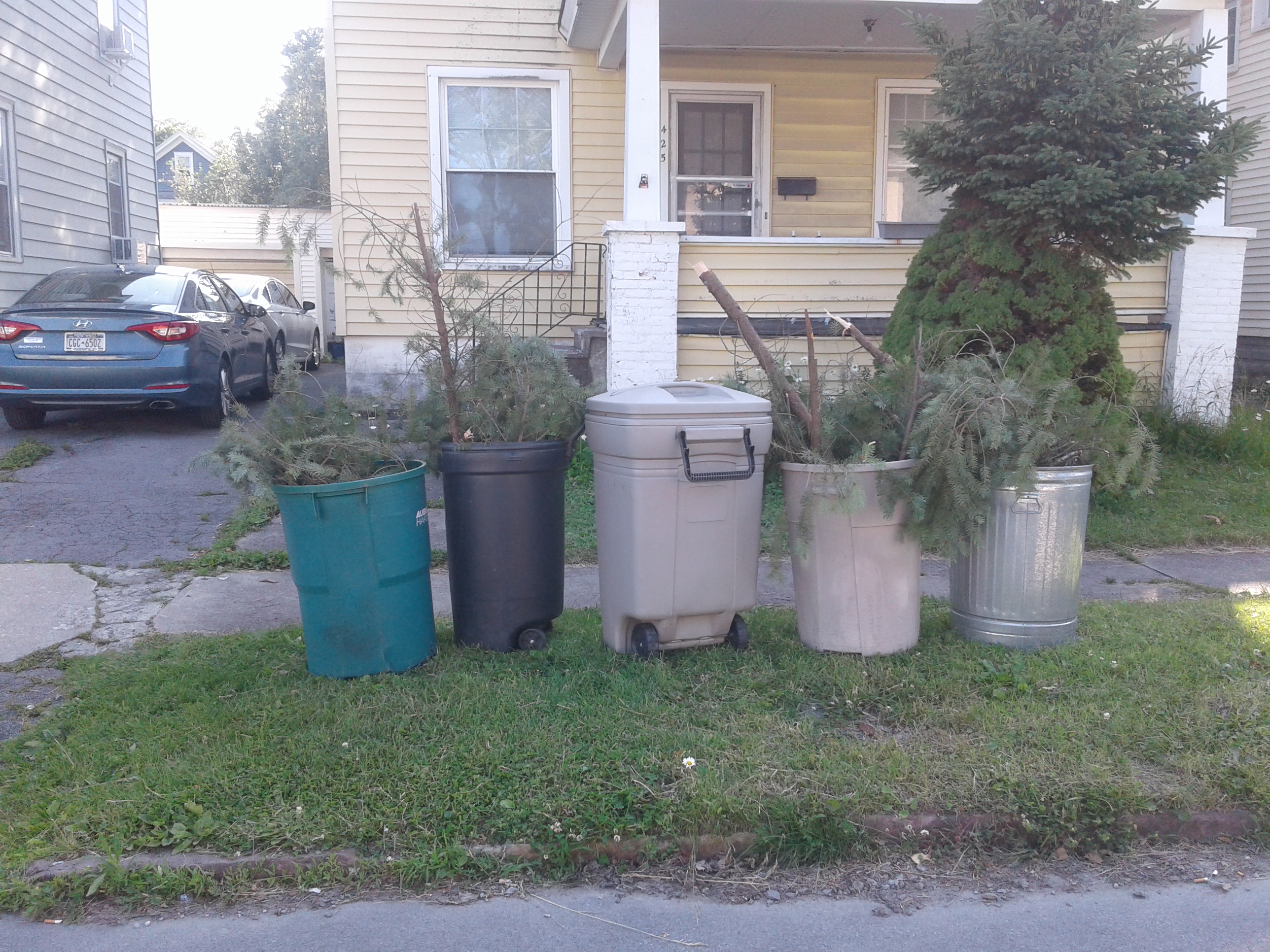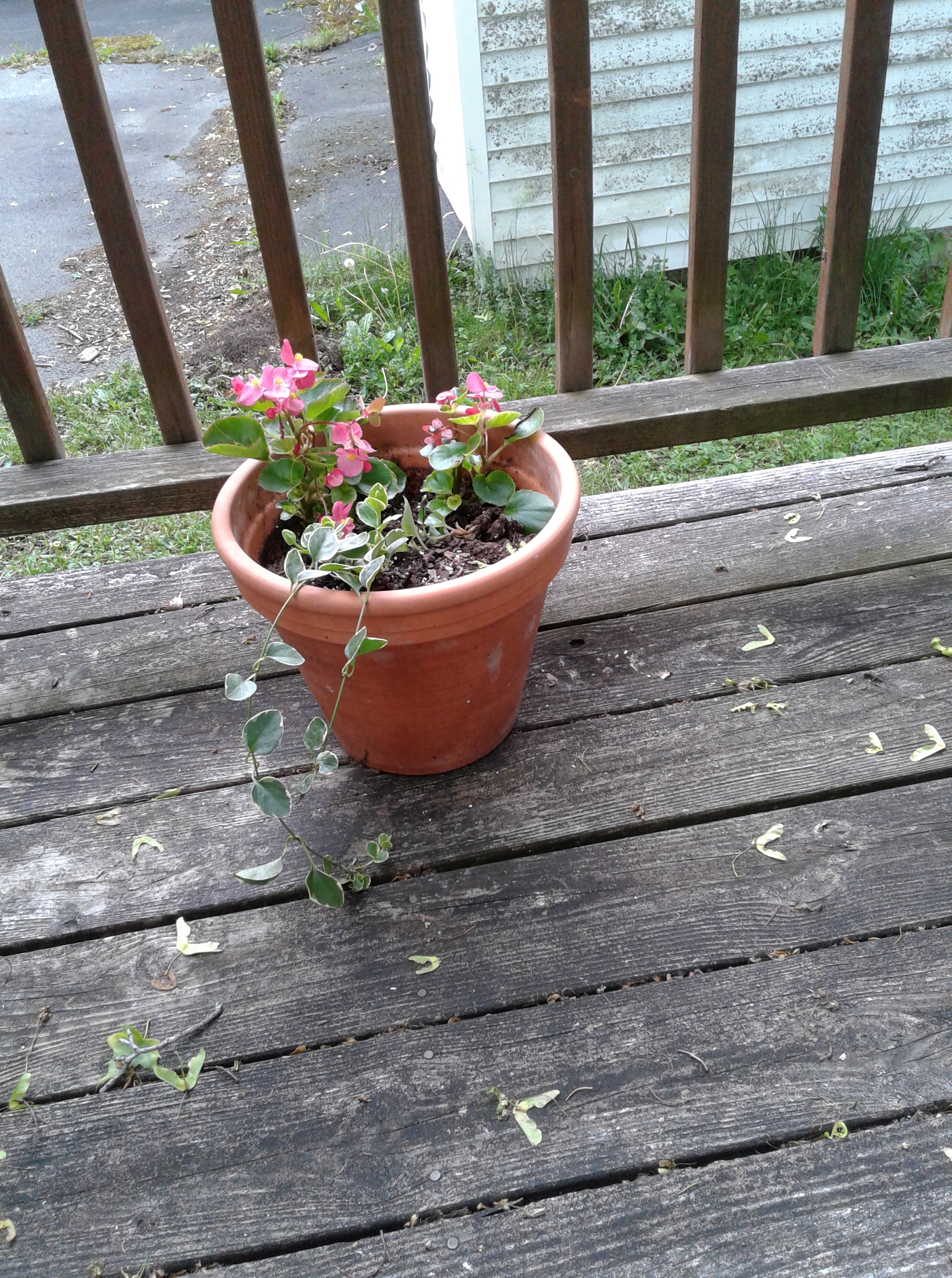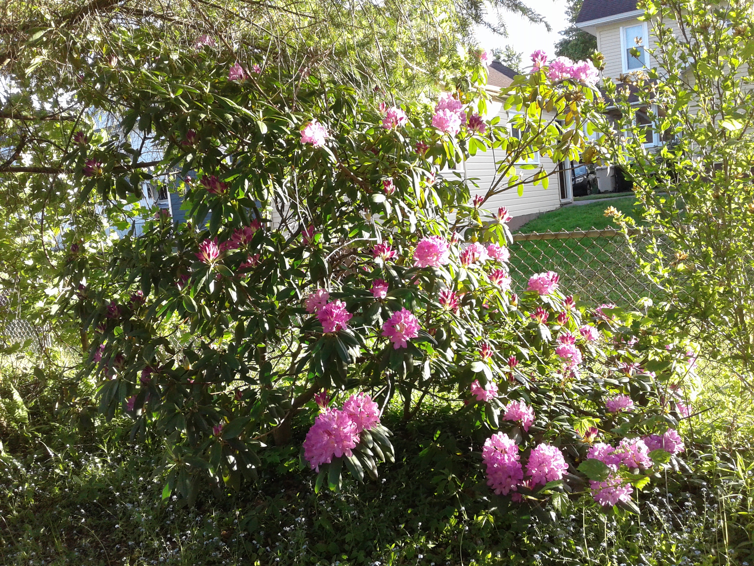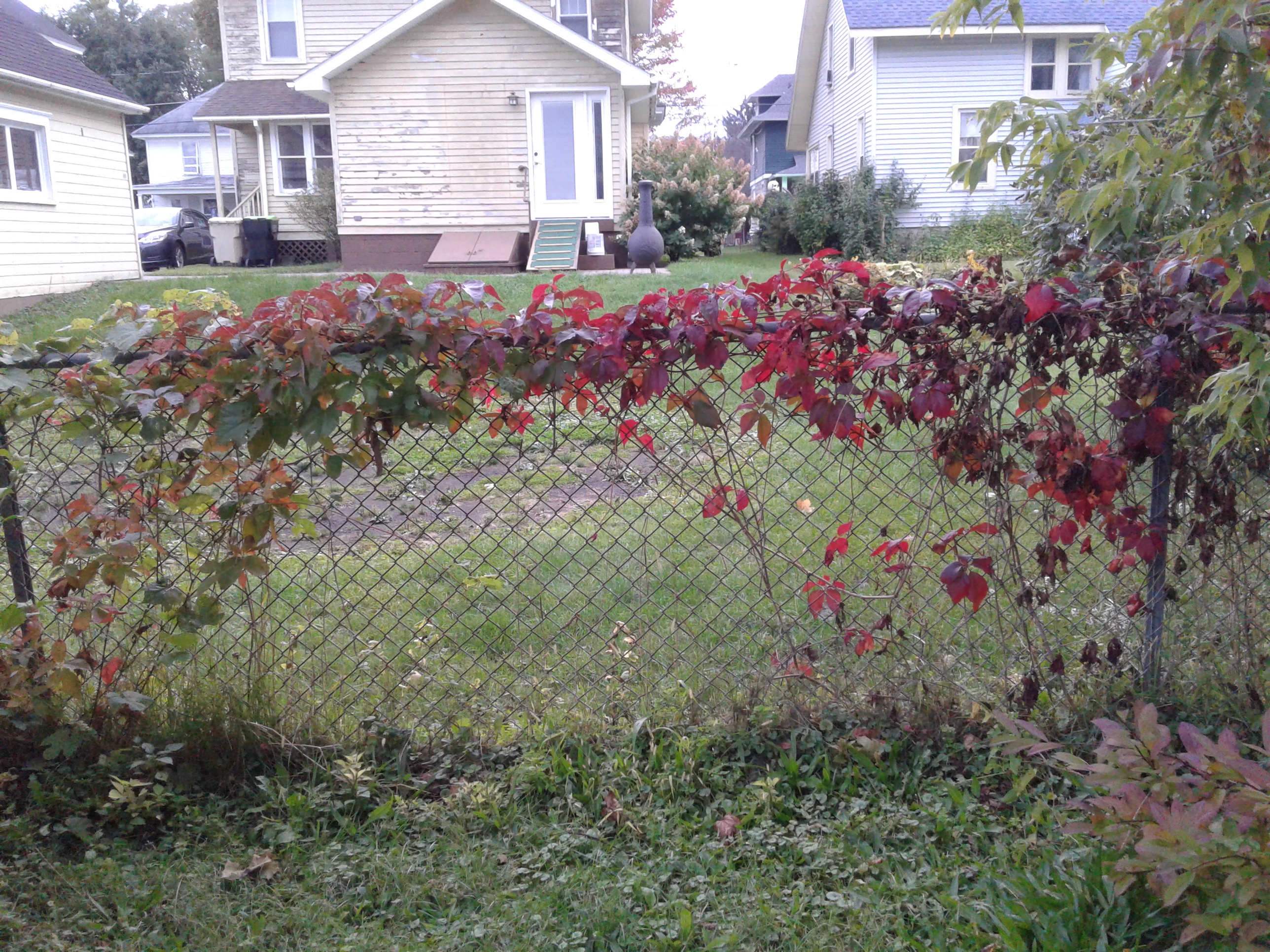 I took a couple of pictures in my back yard a while ago, after I had spent some time cleaning out fallen branches from the last storm. My Rose of Sharon as a whole is not looking as lovely as some I have seen in my walks and runs, but I was happy to see some blossoms. I need to get more aggressive in cleaning out the wild grape vines which are taking over the place. I am a little afraid my back yard will turn into some cheesy sci-fi/horror flick: The Vines That Ate Mohawk Valley Girl. I was thinking maybe The Grapes of Wrath, but it doesn’t pay to get to literary.