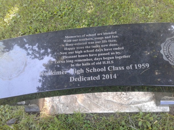 As I walked across the park to take a picture of the 9/11 Memorial Garden, I noticed this bench I had never seen, donated by Herkimer High School Class of 1959.
