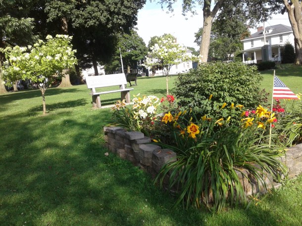 And here is the Memorial Garden. You can’t read it, but the bench says what it is.