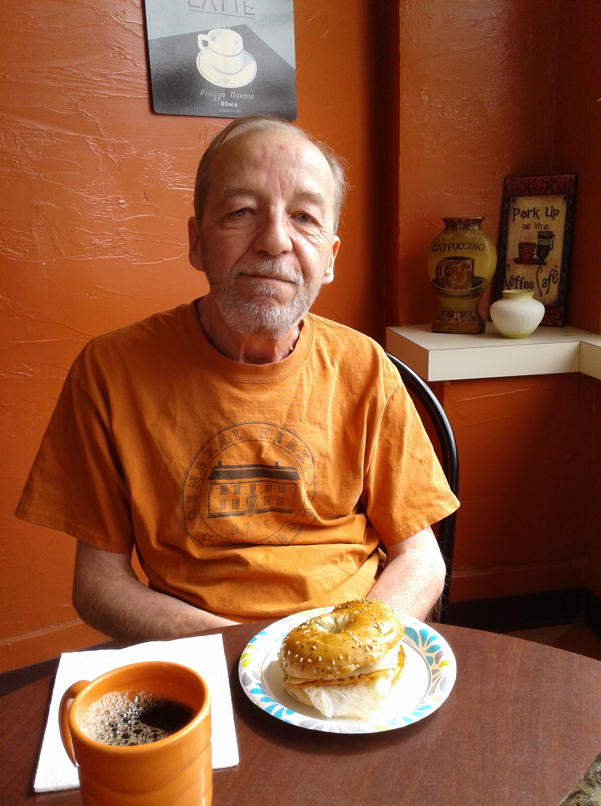 I ordered an egg sandwich on an English muffin and after some debate decided on regular coffee. I was going to get fancy and try a latte but decided against it at the last minute.