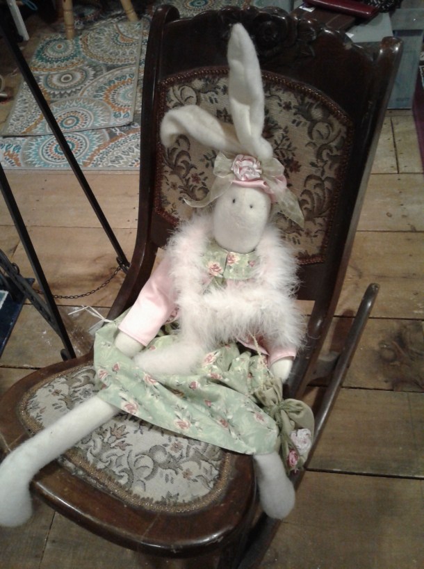 We have two nice bunnies of our own.  I must share a picture of them and tell their story sometime.  I wonder if we ought to buy them a friend.  I’ll check for a price on this lovely lady the next time I stop in at the Old Barn Marketplace.