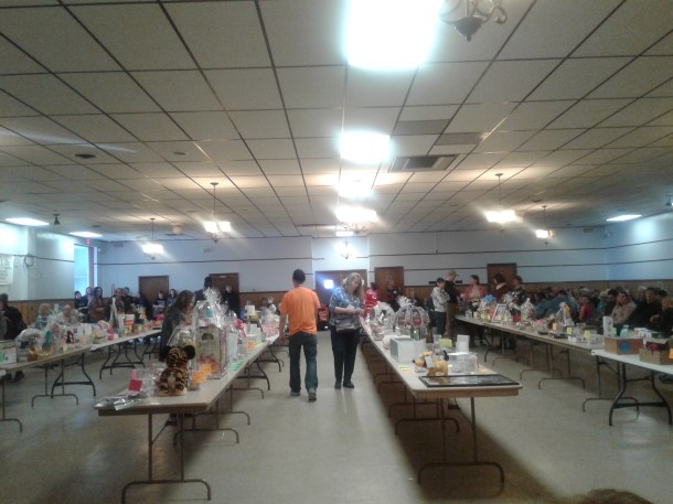 Steven had to work the next day, but I found room in my busy schedule to go down and put in some chances. Gift certificates, baskets with various tantalizing contents, a gorgeous guitar, decor… I can’t even name all the stuff that was there. I put in for several of the baskets and a few of the gift certificates. I looked at the guitar, but since I don’t play I thought it better to leave it for those who do.