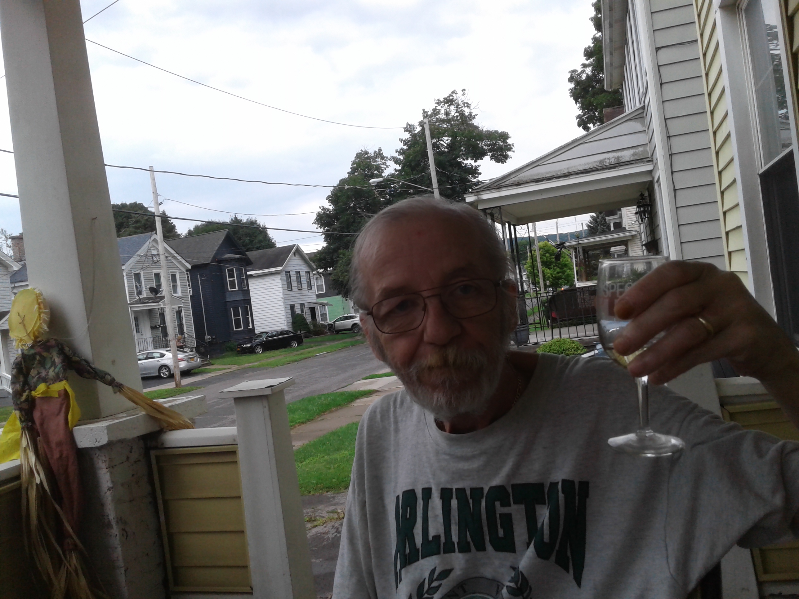 I looked around for a good picture to end with, and this nice shot of Steven caught my eye. It is one of our many happy times hanging out on the front porch. In the background, you can see another scarecrow peeking around the post. I suppose she is spying on the neighbors, but I do not judge her for that. I love hanging out on the porch, but it might get boring for a scarecrow to be there 24/7. Full disclosure: she is there 24/7/365. She is out there now. I may make up a new plot for her later.