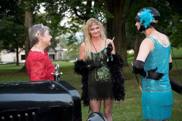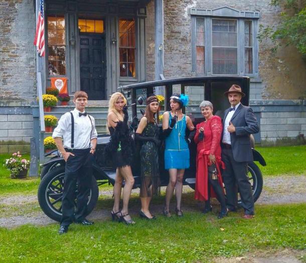 I begin with a throw-back photo, but with a purpose.  These are some of the characters from Rubbed Out at Ruby’s the murder mystery presented by LiFT, Little Falls Theatre Company, last year.  We made a reappearance at the Ritz and Ragtime at Rutger Park fundraiser for the Landmarks Society of Greater Utica.  A few of us are making a reappearance next Saturday, Oct. 6, at this year’s event.