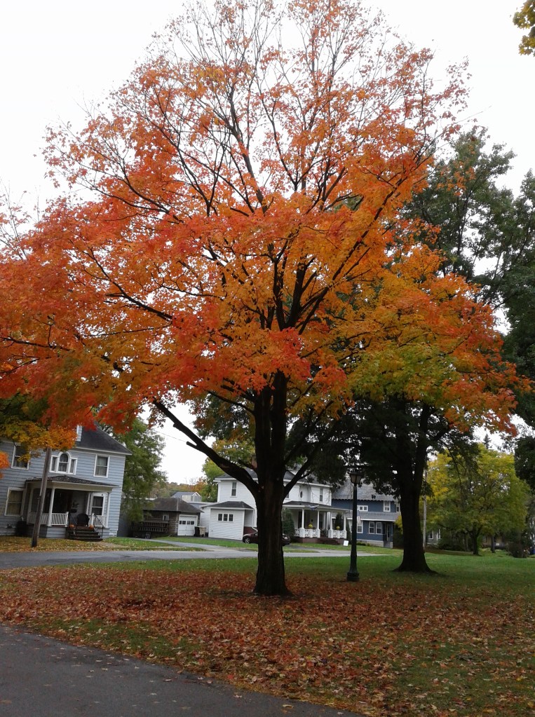 I ran through the high school parking lot, down Bellinger Avenue to Graham, then down Church to Bellinger Street (yes, we have a Bellinger Avenue and Street in our little village; don’t get me started!). I went by the house to the apartment building two doors down, then up their driveway. I saw a lady I know sitting out front. We greeted each other and she praised my running.