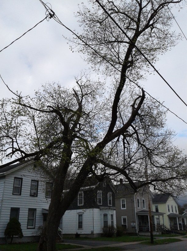 But I digress. The main thing I wanted was a picture of a tree on my street which is just starting to get leaves. I love the delicate green color.