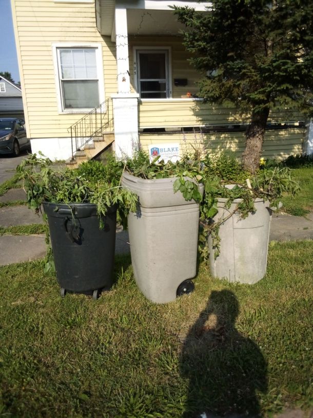 Full disclosure: I did not chop and pull the entire contents of the barrels. My across the back neighbor had done some chopping of the vines covering the back fence, so I only had to gather those and put them in the tub. That was effort enough for an old broad like me.