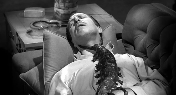 In my search for inspiration, I find a shot of Vincent Price in The Tingler, another Castle masterpiece.