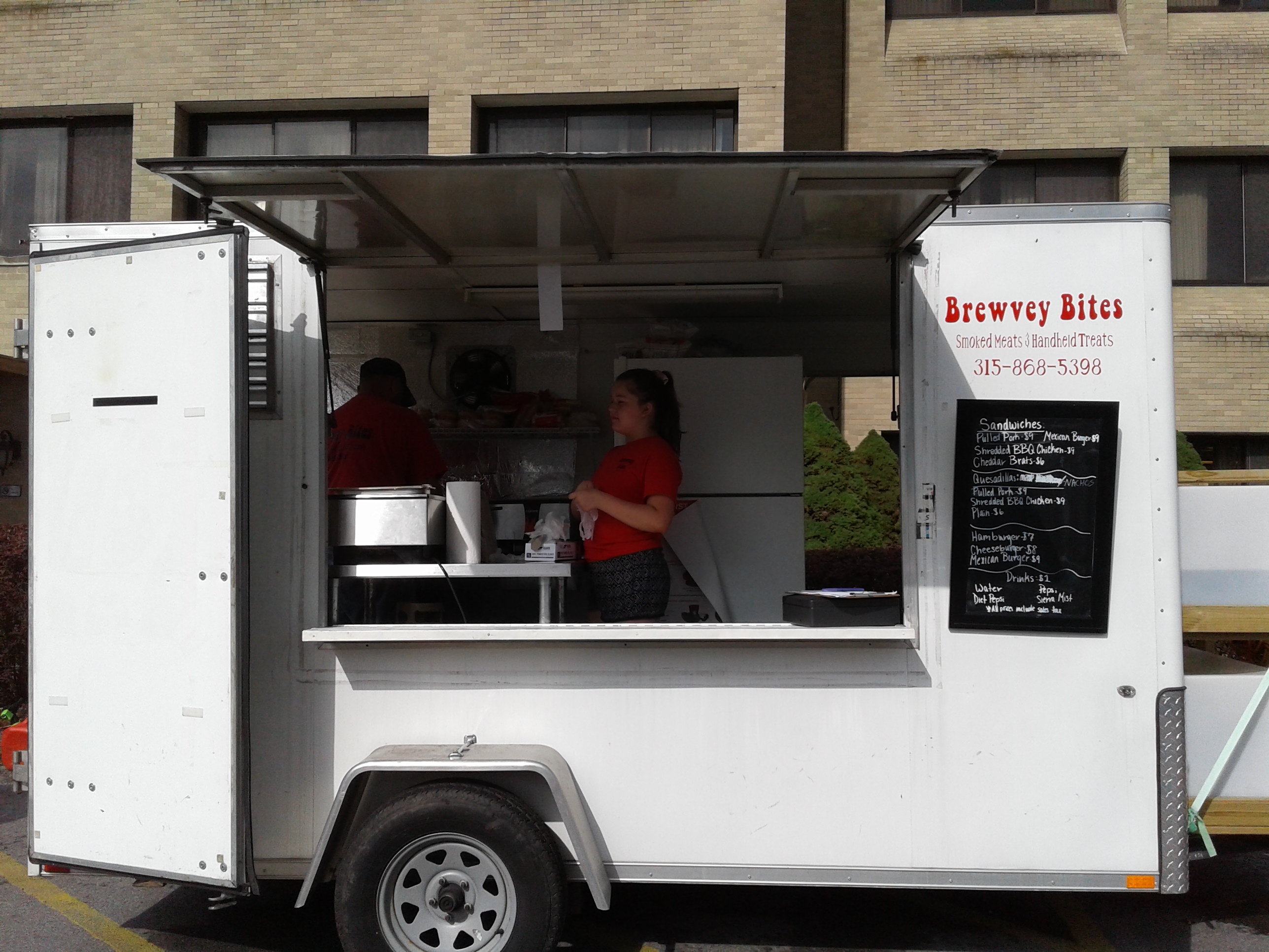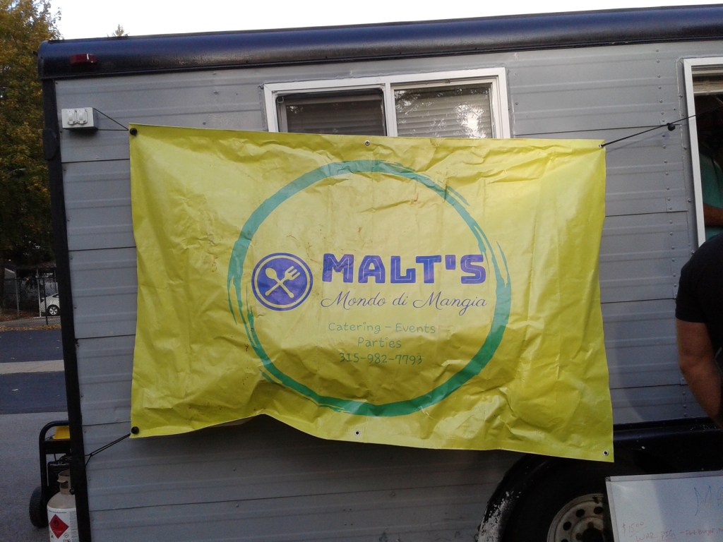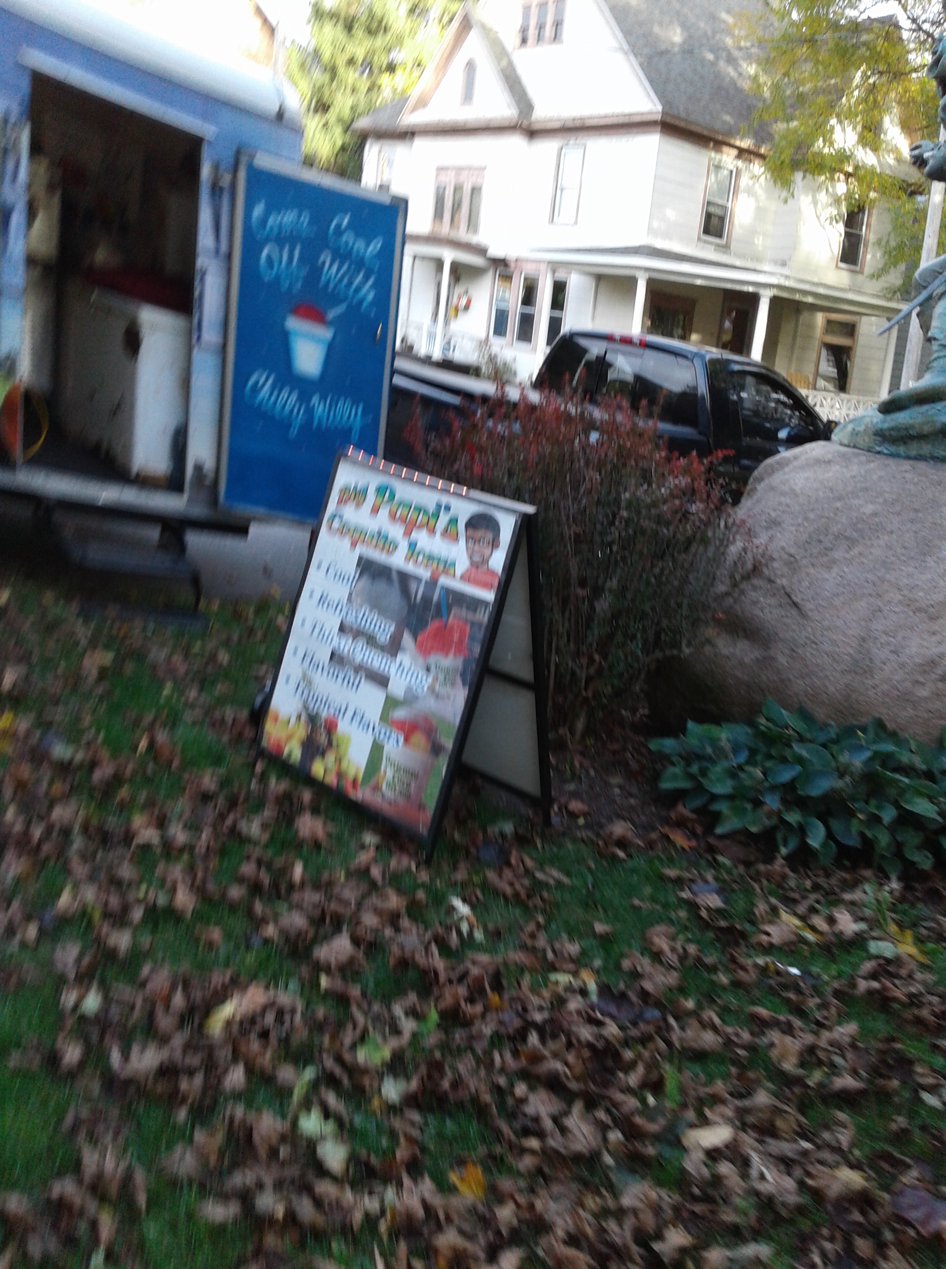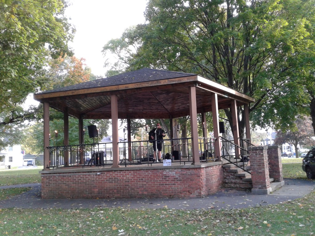 Earlier tonight I made a short top at the Herkimer Downtown Chowdown, the weekly food truck festival in Meyers Park, to hear a little bit of K.O. Grainger. It could only be a short stop, since I had to attend the Ilion Village Board meeting, but it was worth it. For one reason, I got a hot dog from The Corner Office. Yum!