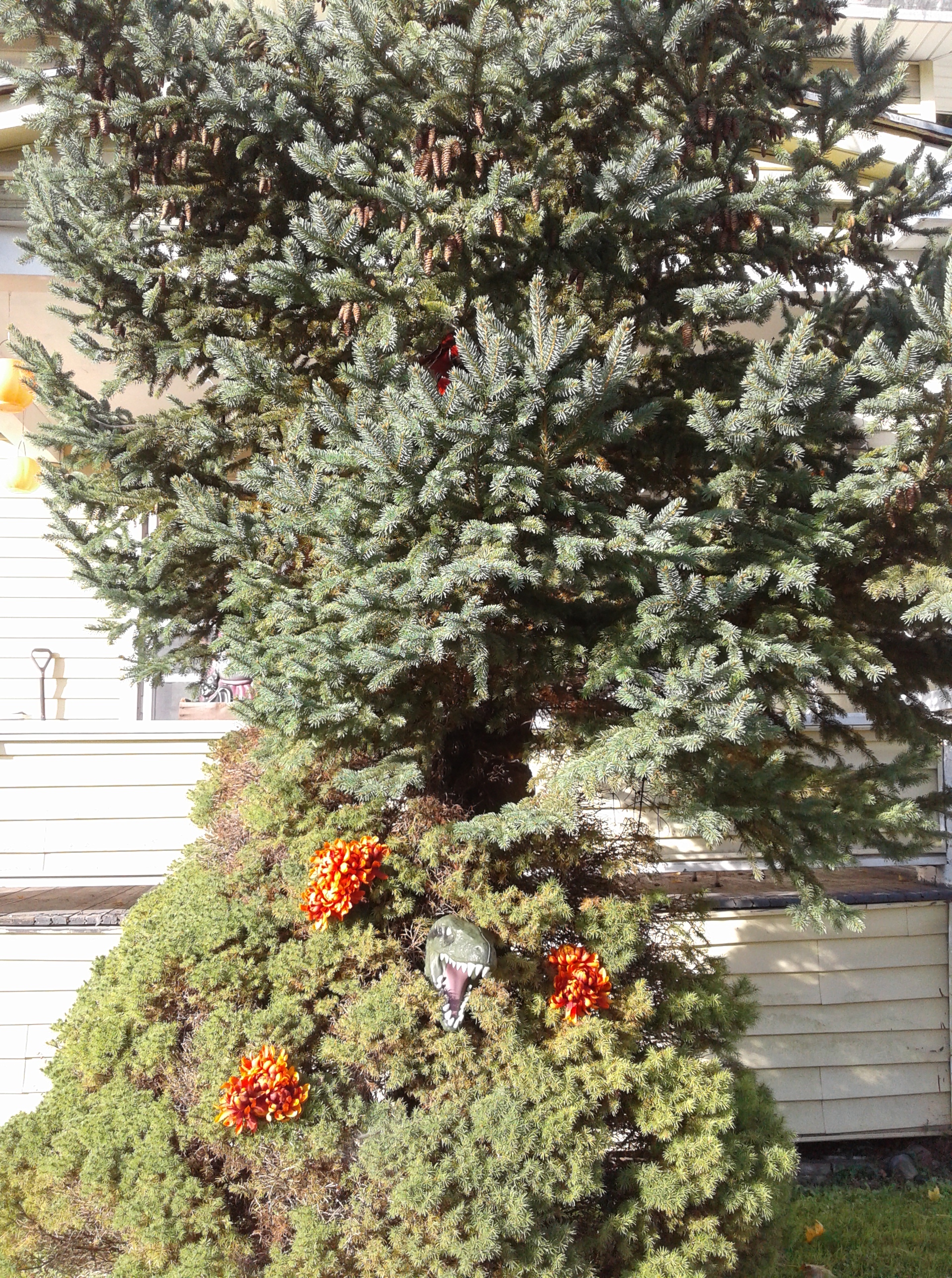 I saw a tree like my beloved Frankentree while out on a walk and had to take a picture. My own tree is not so Frankeny anymore since my sister Cheryl took a chainsaw to it. In her (and my) defense, the branches she cut off were mostly brown. I’d like to take the rest of the tree down and maybe plant one of those flowery ones in its place, but that’s for the future.