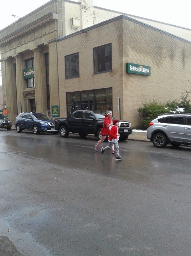 This is me finishing the Reindeer Run 5K in Little Falls, about a step behind Santa Claus. I think I may have been able to pour it on a little more and beaten the kid, but I did not try.  Perhaps if I had tried I would have failed.  But it was a fun run.