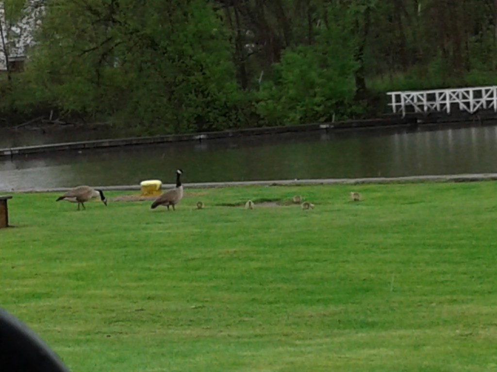 My friend, Kim, and I were driving through Frankfort Marina when we saw some geese with babies. We both whipped out our devices and rolled down the window. I did not even mind getting rained on a little, although I was concerned about my Tablet getting wet. However, it seemed to hold up fine.