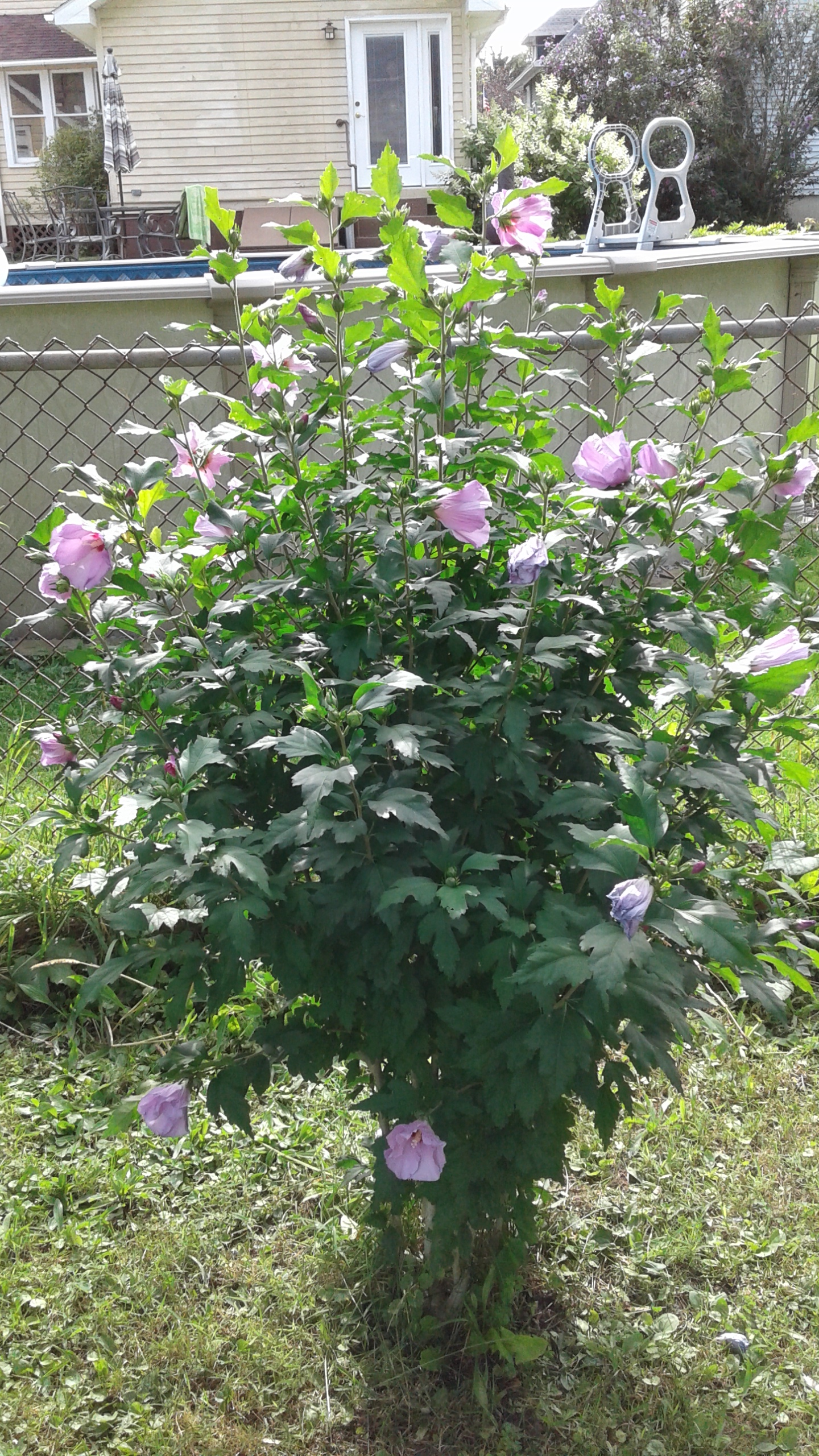 Steven has been wanting to get a picture of our Rose of Sharon in the back yard.  I finally got one today and thought, hey, let’s do a Backyard Picture Post.