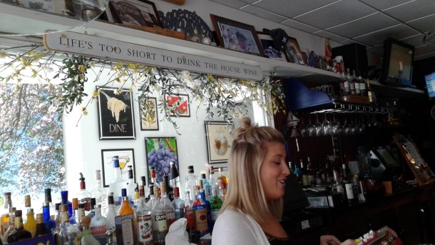 Next Steven and I went to Gems Along the Mohawk, so I could buy a few postcards. Then we were feeling a bit peckish, so we drove to Cacciatore’s on Barringer Road in Ilion (where the Moose Lodge used to be). We had a delicious pizza and made some new friends.
