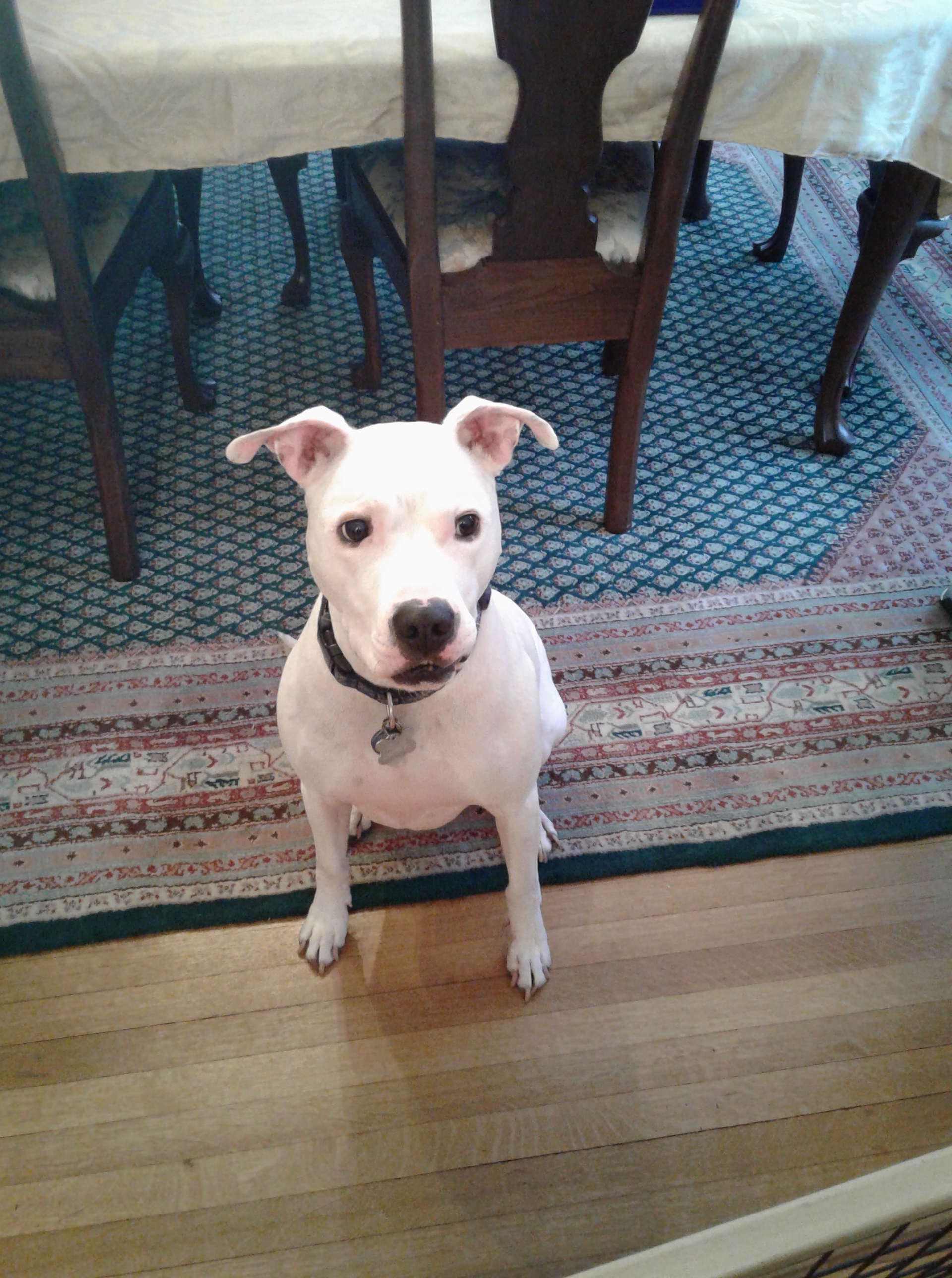 The first thing I saw when I walked in the door was the nicest dog! I barely remembered to shut the door before I went over to let him. His name is Brick, and he loves people.