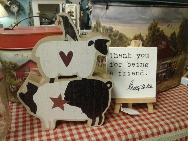 A Little Touch of Country has been in business a little over a year. I know this, because the last time I was there was when I saw on Facebook they were celebrating an anniversary. I stopped in and took these pictures. I also purchased a present for a friend who needed a little pick-me-up. I admit with some shame that this was probably a couple of months ago. Well, regular readers know I have been a bad blogger lately. I am trying to do better, hence this post about a local business.